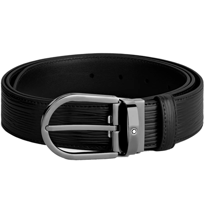 Черный кожаный ремень с подковообразной пряжкой 35мм от магазина премиальных ручек Premium Pens в Керчи.